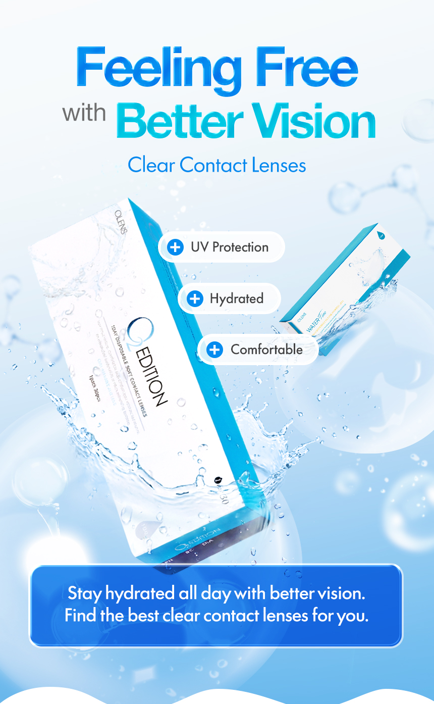 Feeling free with Better vision. Stay hydrated all day with OLENS best and premium clear contact lenses. Check our 4 clear contacts and find the best one that suit you.