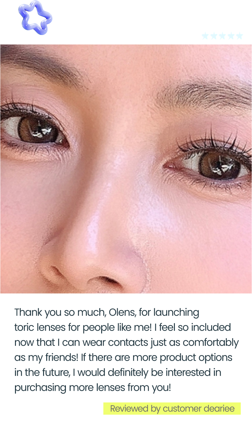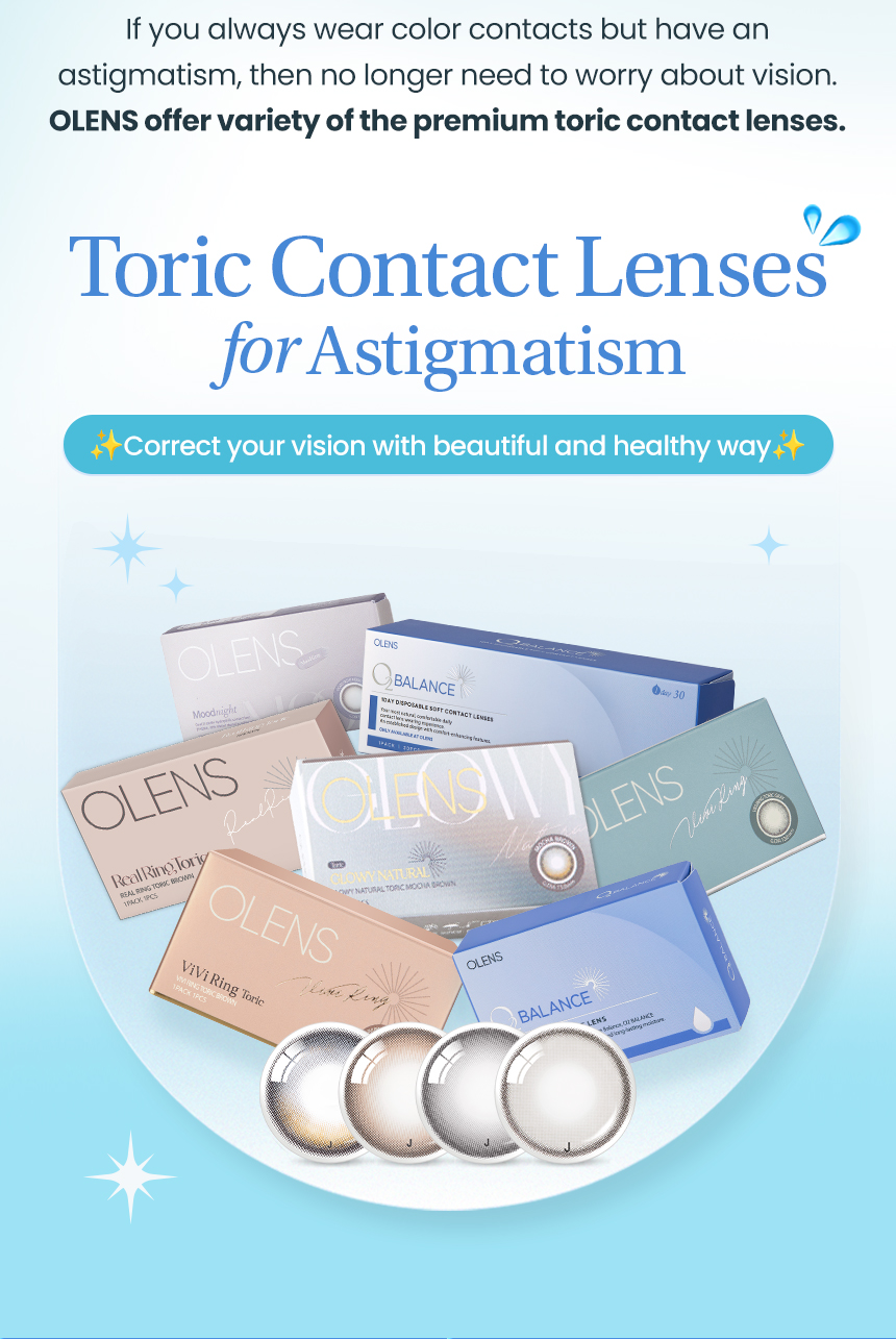 If you always wear color contacts but have astigmatism, you no longer need to worry about vision. OLENS offers a variety of premium toric colored contact lenses for astigmatism. Correct your vision in a beautiful and healthy way.