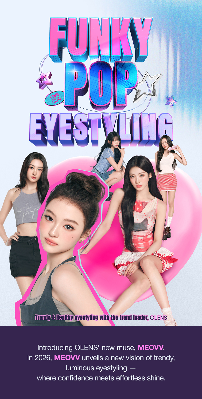 Introducing OLENS's new muse, MEOVV. In 2026, MEOVV unveils a new version of trendy, luminous eyestyling - where confidence meets effortless shine.