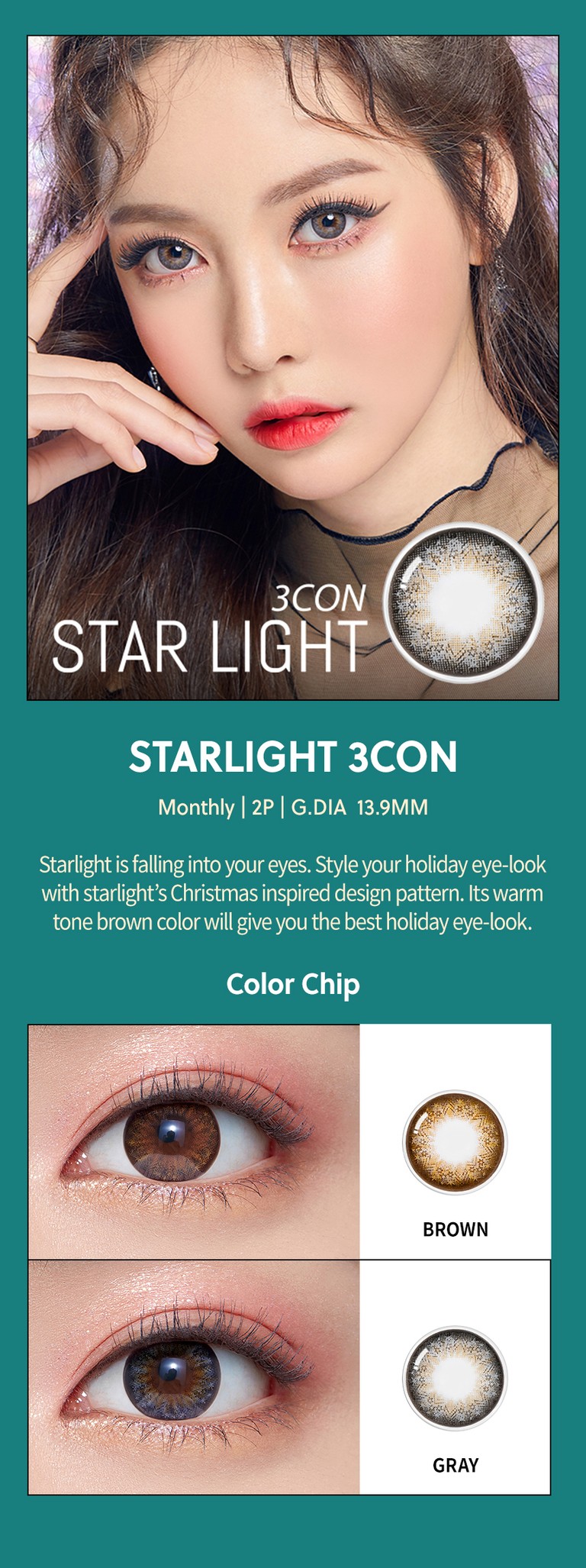 Starlight is falling into your eyes. Style your holiday eye-look with Starligt’s Christmas inspired design pattern. Its cool tone gray color will give you the best holiday eye-look.